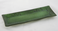 10 1/2 ” x 3 1/4″ Tray, green glaze – “Live, Laugh, Love” inscribed along sides in Arts & Crafts style lettering